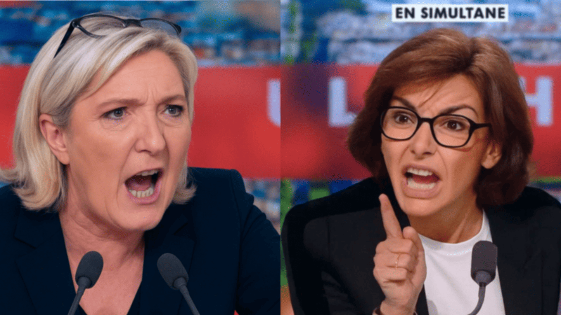 📢 Rachida Dati (visiblement nerveuse, bras croisés, regard fuyant) : « Vous déformez mes propos, Marine. Ce n’est pas ce que vous prétendez. Franchement… Je ne pensais pas que vous descendriez aussi bas. »